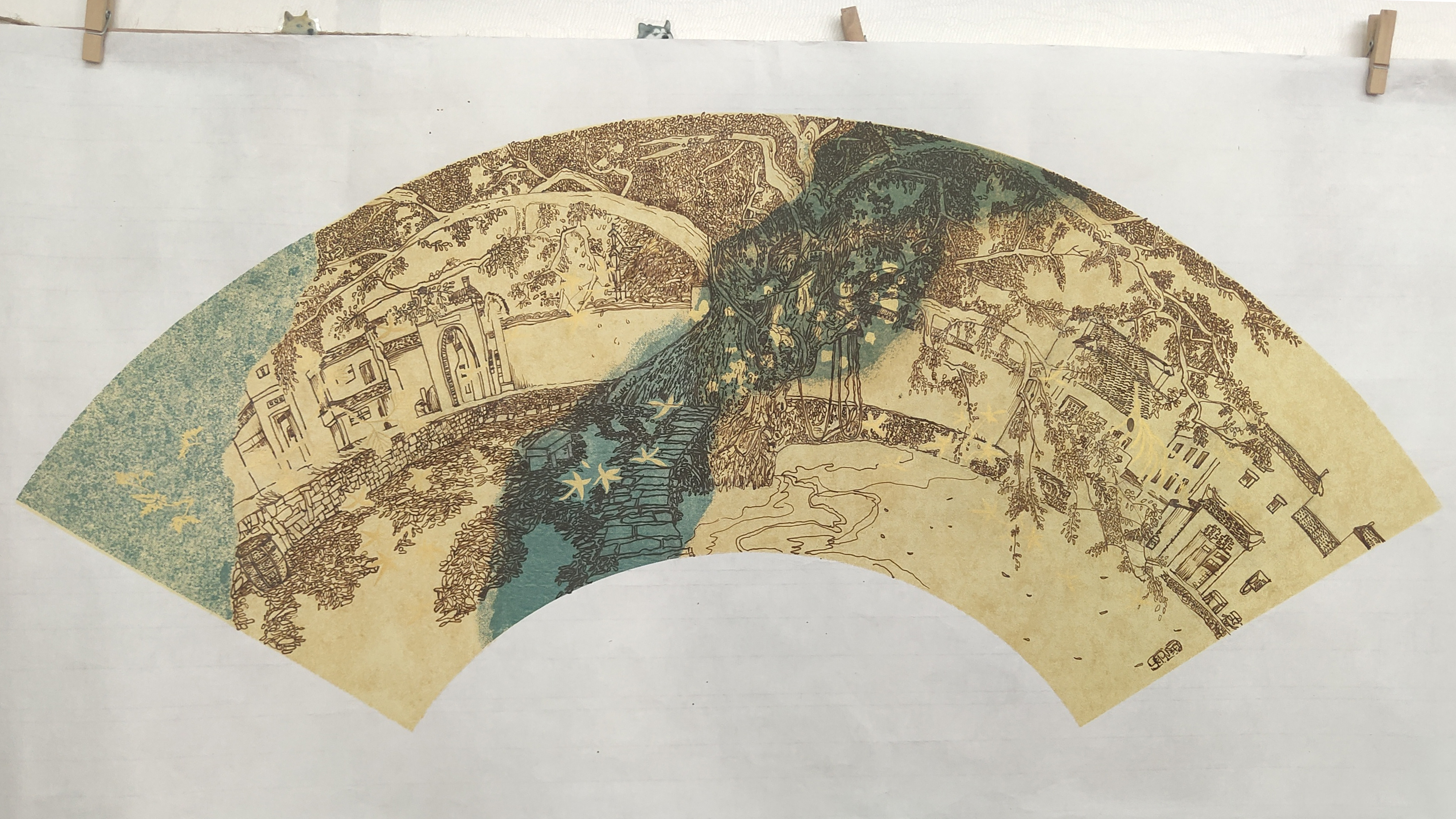 This is my first practice sketch. It depicts a bustling small town scene in China. I started with a special kind of paper. The teacher asked me to find a sketch from a book that would suit it, and then copy it for practice. I chose this one because it felt perfect for the paper — old, historical, and full of life. It includes buildings, people, cars, and the most satisfying part: the countless tiny roof tiles.